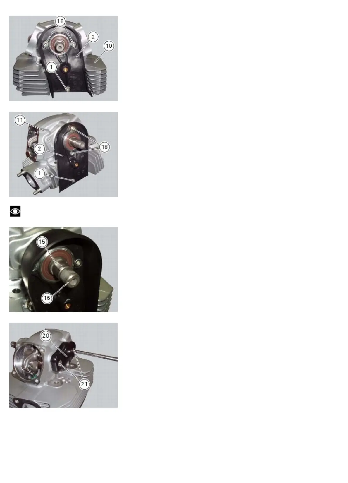 Unscrew the screws (21) of the cover (20) of the camshaft (16).