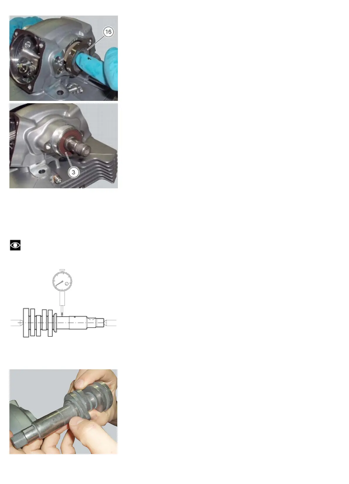 Install the camshaft between two centres and check for distortion using a dial gauge: