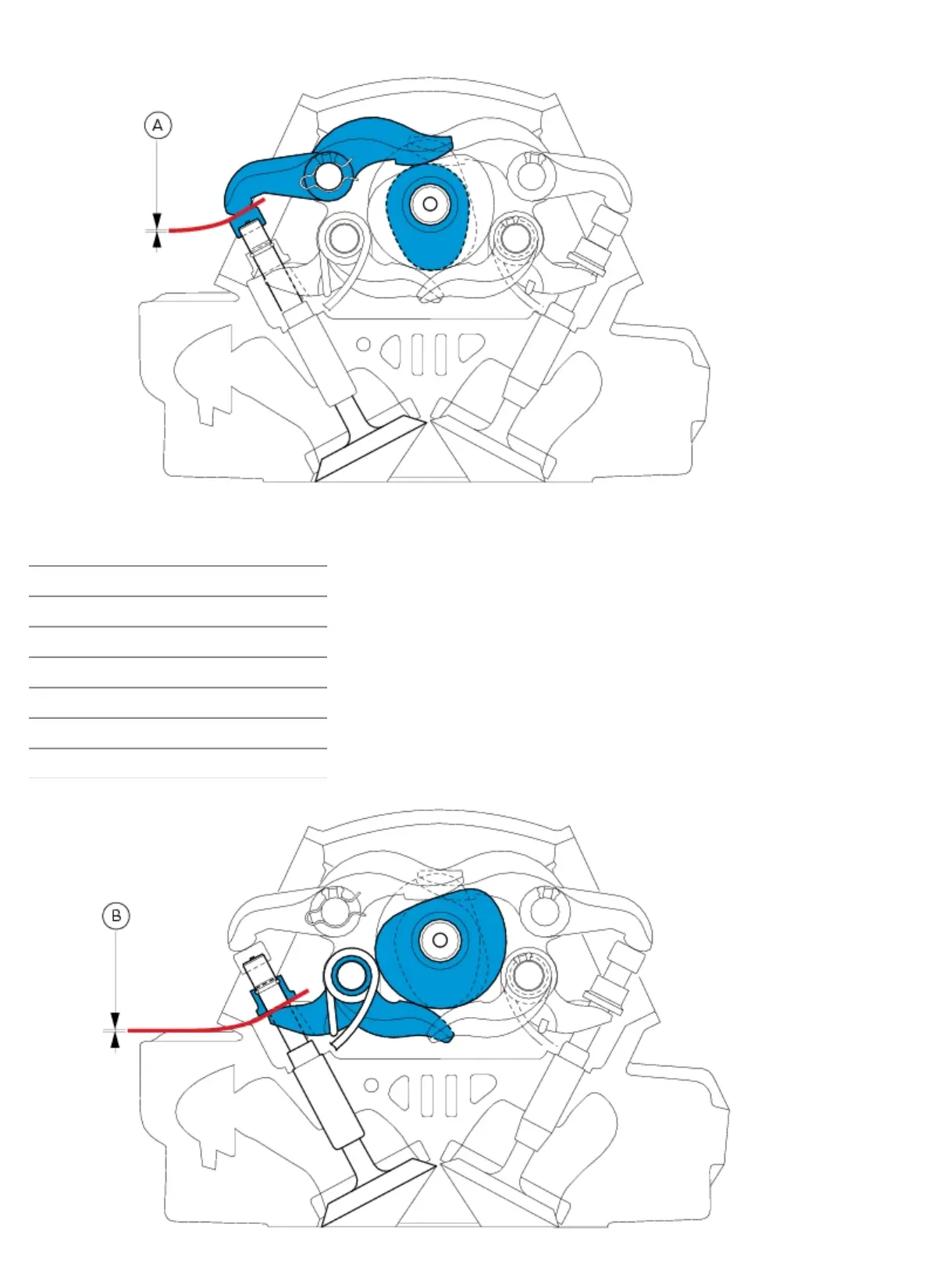 With the valve in the rest position, slide a feeler gauge between the closing rocker arm and the closing shim to measure
