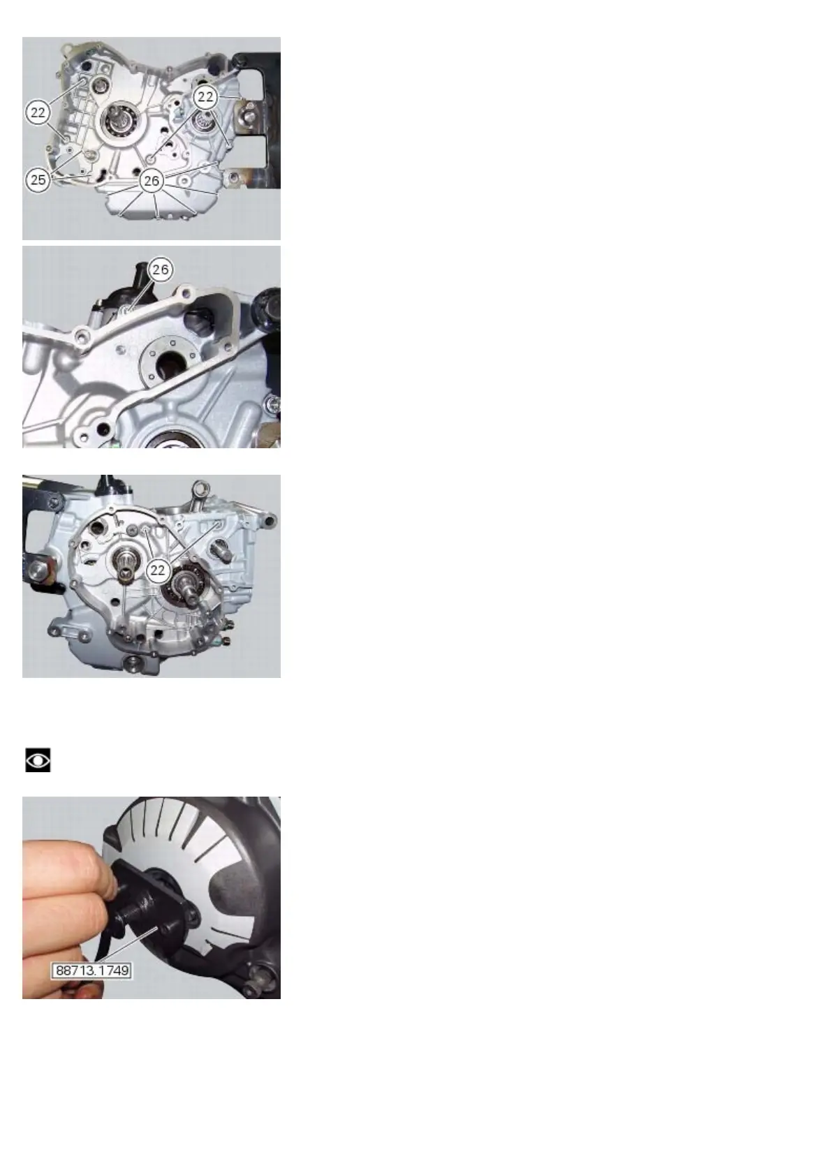 Unscrew the two screws (22) from clutch-side crankcase, near the vertical cylinder.