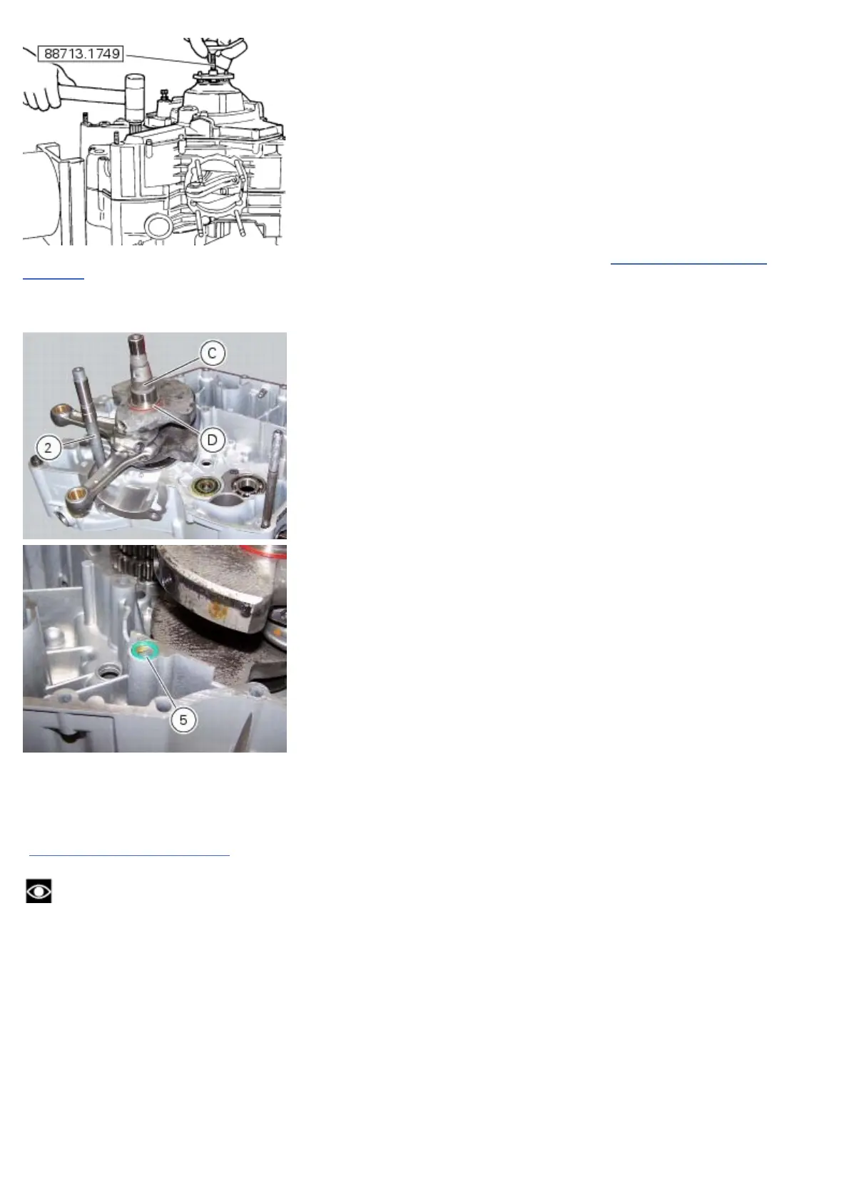 Check that the surfaces of the crankcases are perfectly flat using a reference surface. Check that the bearings (4) and