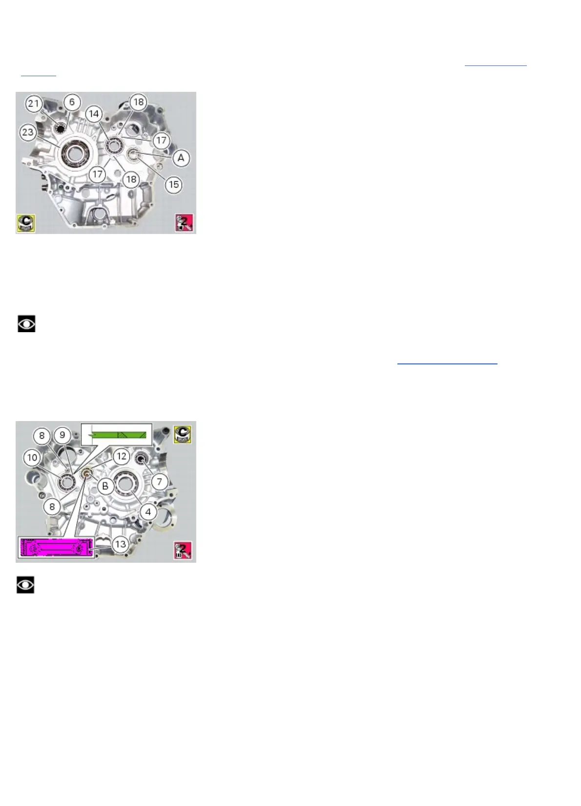 -the primary shaft bearing (14), secured with screws (18) and retaining spacer (17): apply the recommended threadlocker