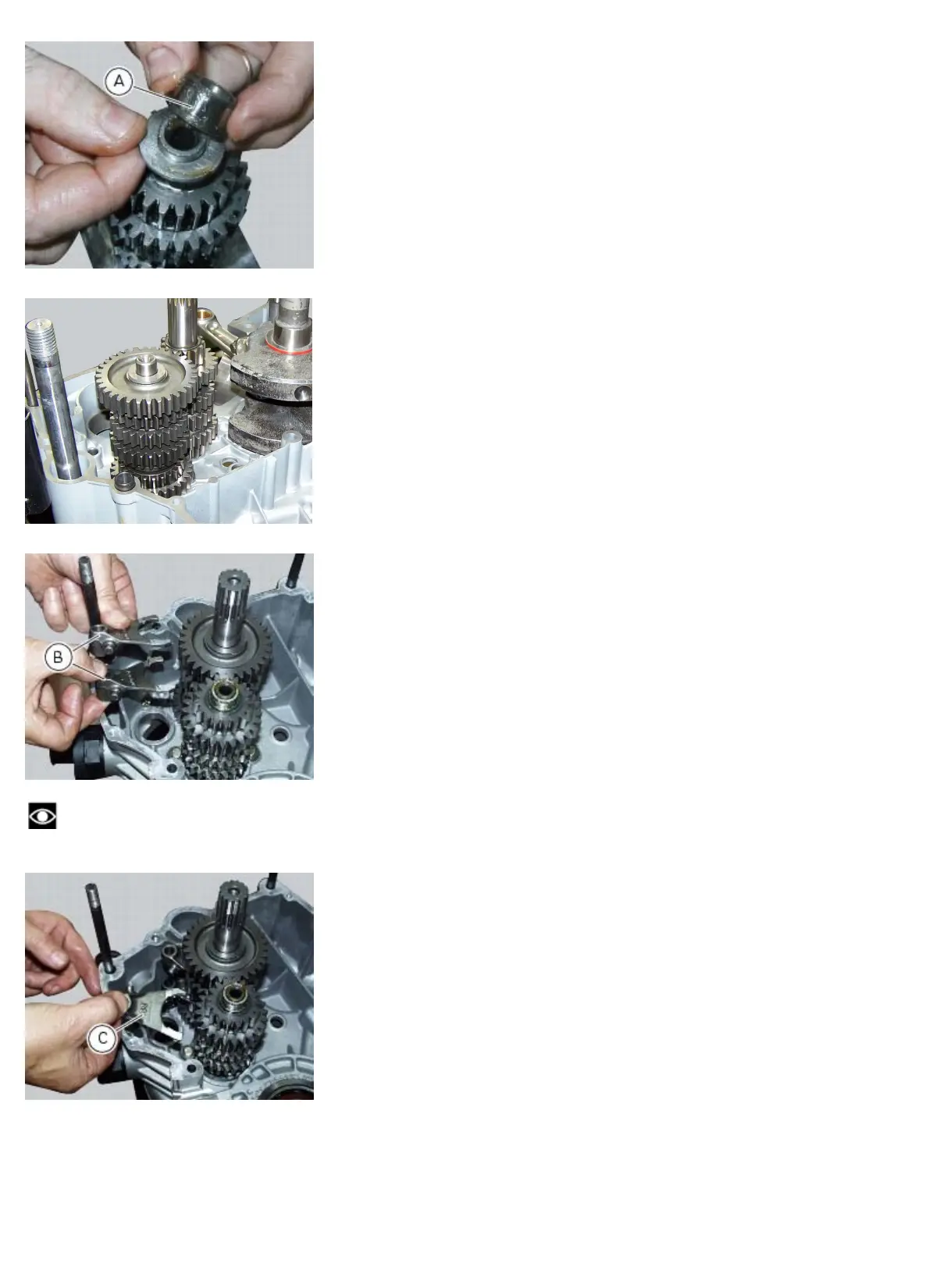 Insert the 5ª- 6ª speed selector fork (C) in the driven gear of the primary shaft.