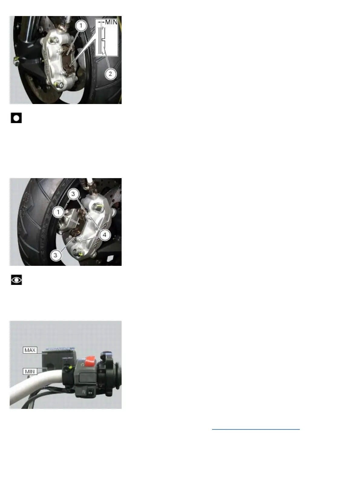 Operate the brake lever repeatedly so that the pads are firmly bedded in against the disc by the force of the brake fluid.
