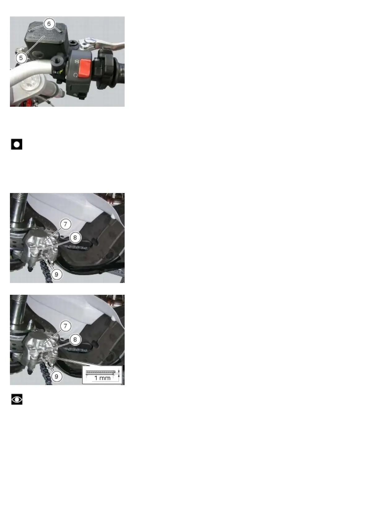 Operate the brake pedal repeatedly so that the pads are bedded in against the disc by the force of the brake fluid.