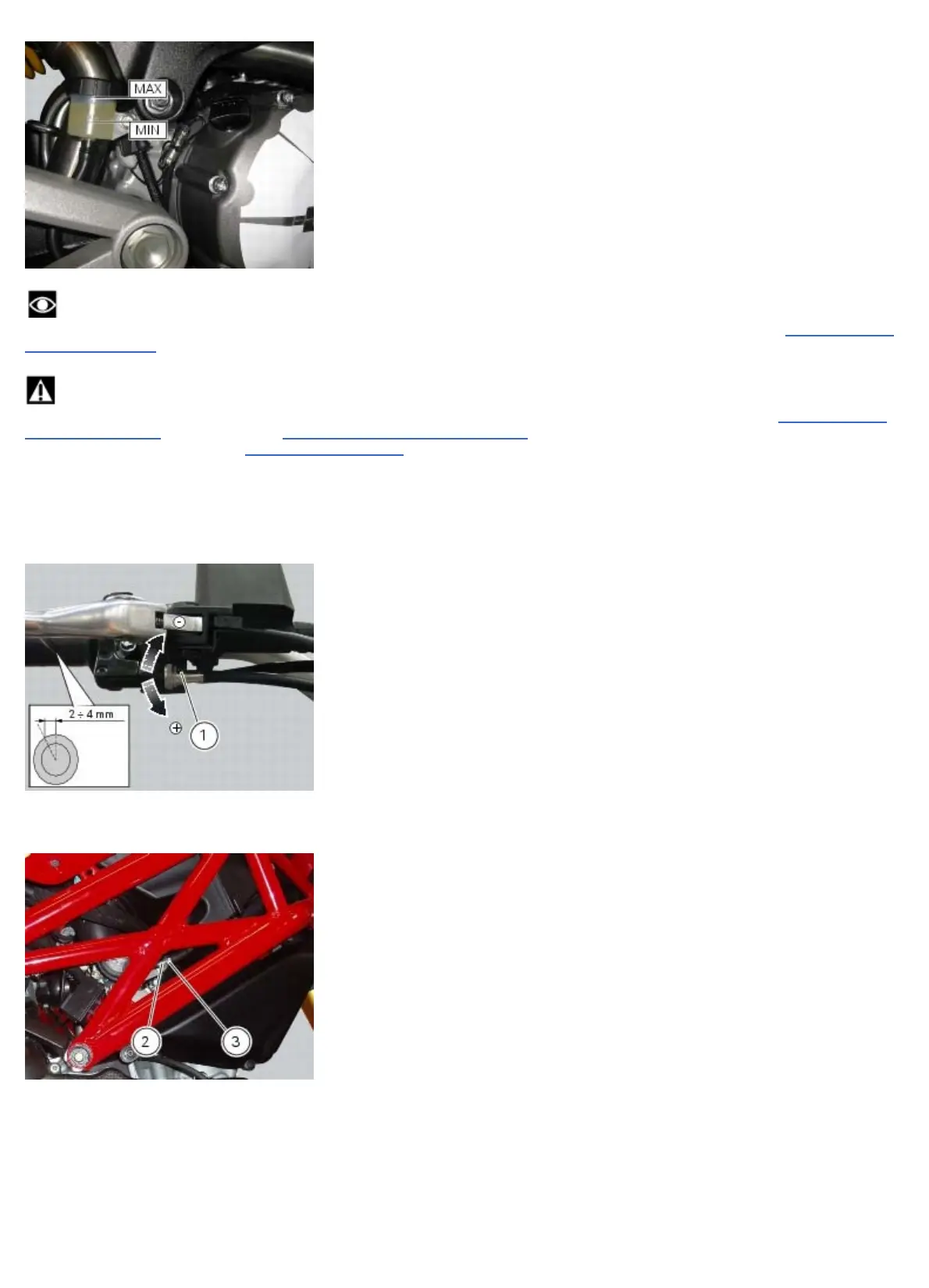 Frame torque settings) of the fixing screws of the callipers.