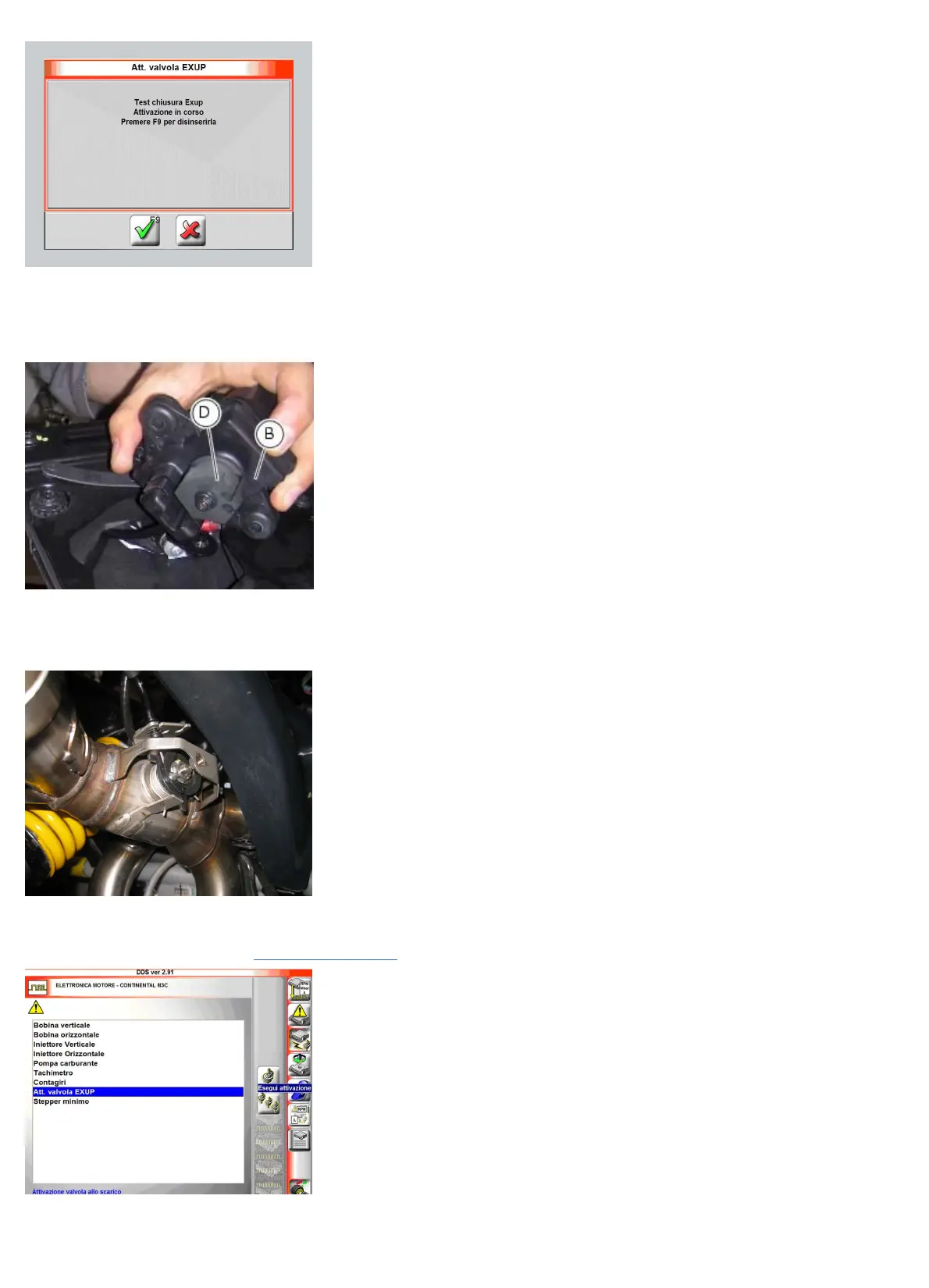 Connect the DDS (Sect. 6 - 13, Tester power supply) and open the procedure “EXUP valve act.”.