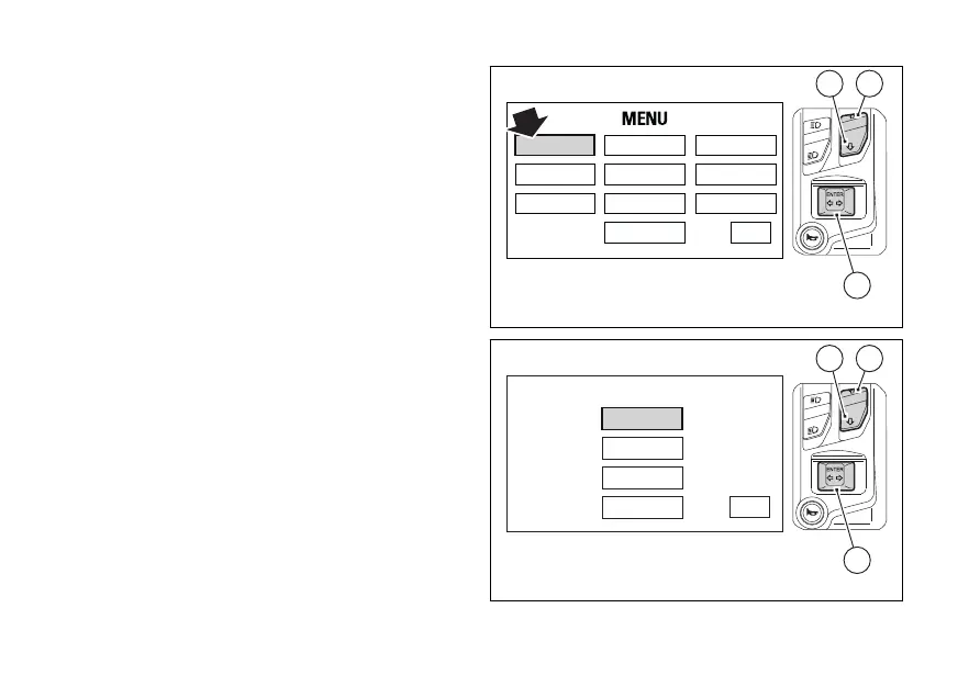 Select "RIDING MODE" option, by pressing button (1)