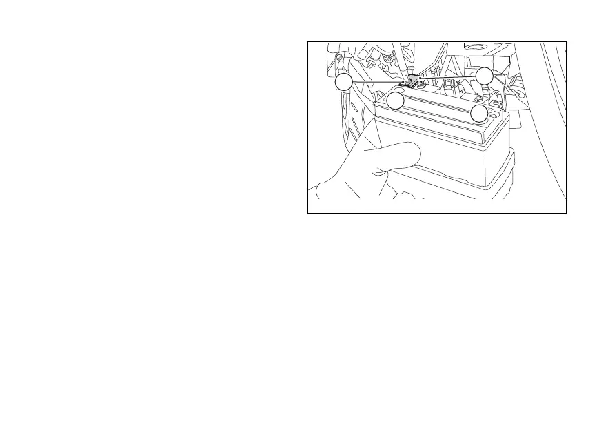 Loosen screw (18) securing negative cable (19) to