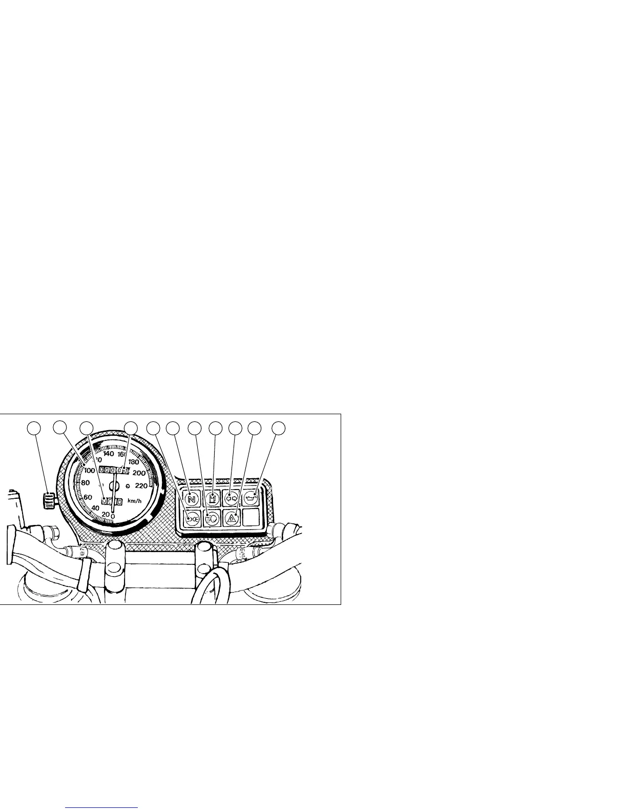 1) Tachometer (km/h).