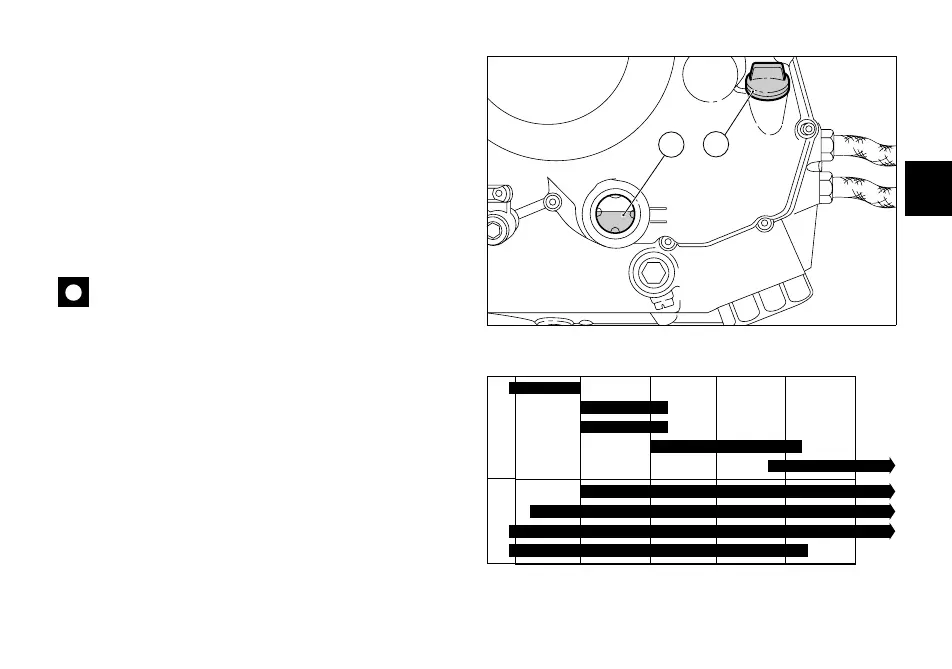 Engine oil level can be checked through the sight glass (1)