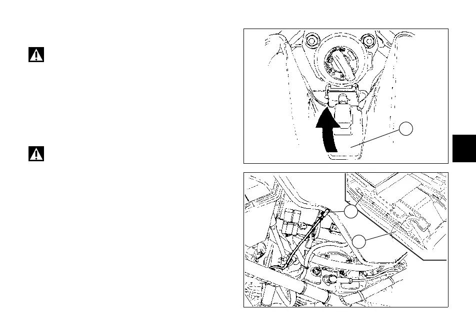 Déposer la selle (page 29), soulever le crochet (1).