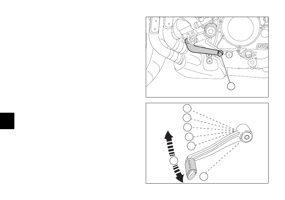 Zur Betätigung der Hinterradbremse das Pedal (1) mit dem