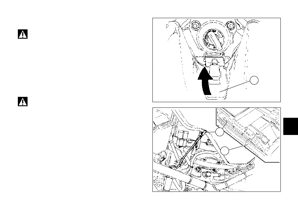 Die Sitzbank abnehmen (Seite 29), den Haken (1) anheben.