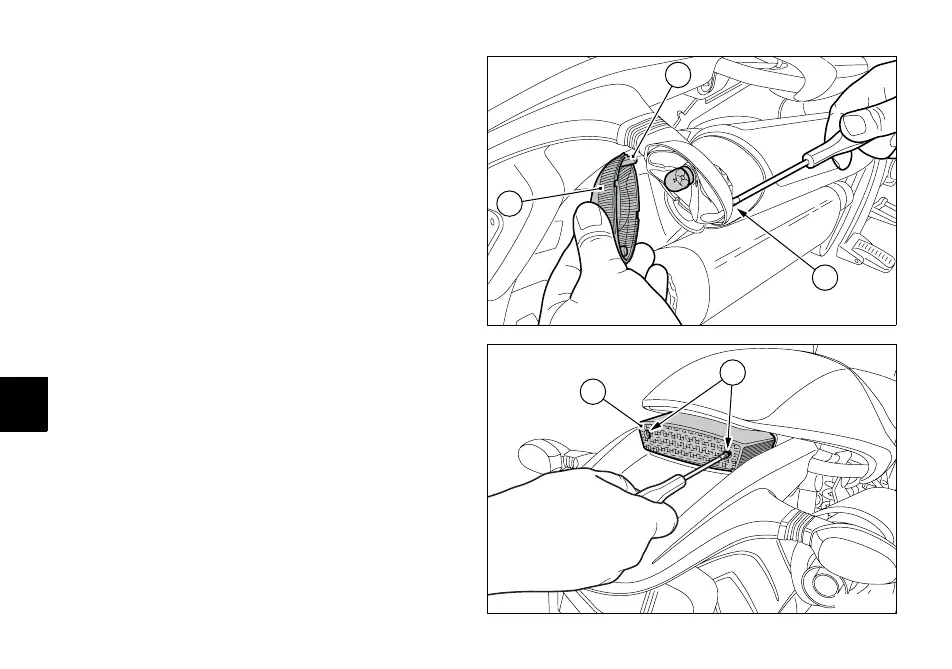 müssen die beiden Befestigungsschrauben (1) des