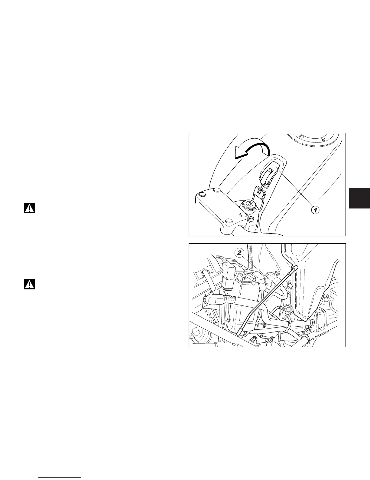 Remove the seat (page 21) and lift the hook (1).