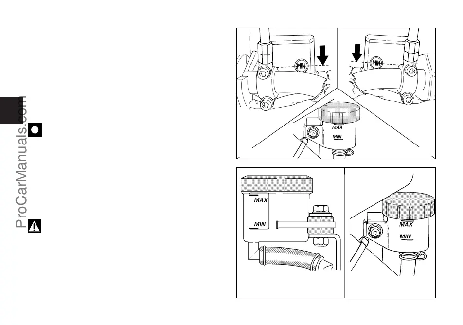 Fluid level should never fall below the MIN mark on each