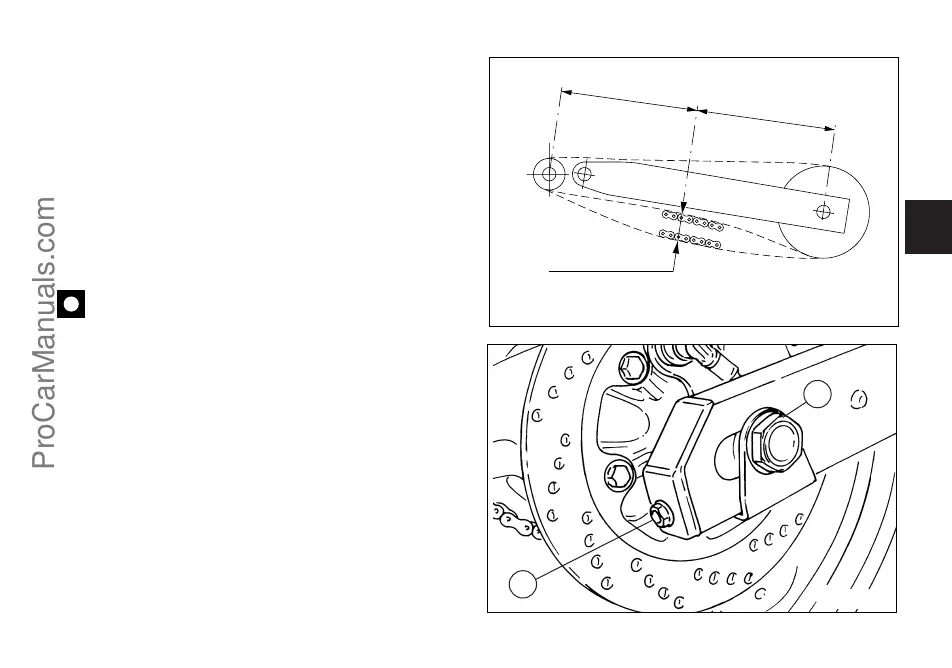 To adjust chain tension, slacken the nut (1, fig. 49) of the