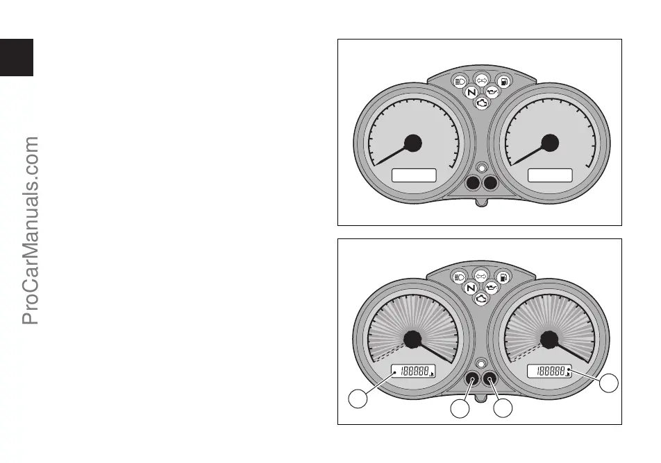 All'accensione (chiave da OFF a ON) il cruscotto esegue