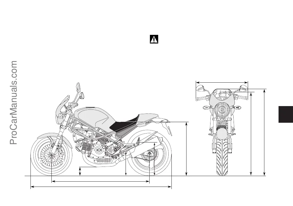 Ducati Monster620 - Caractéristiques Techniques; Encombrement; Poids