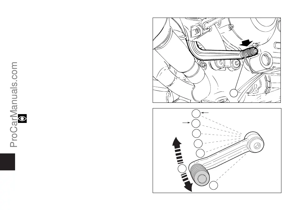 Das Pedal (1) mit dem Fuß nach unten drücken und so