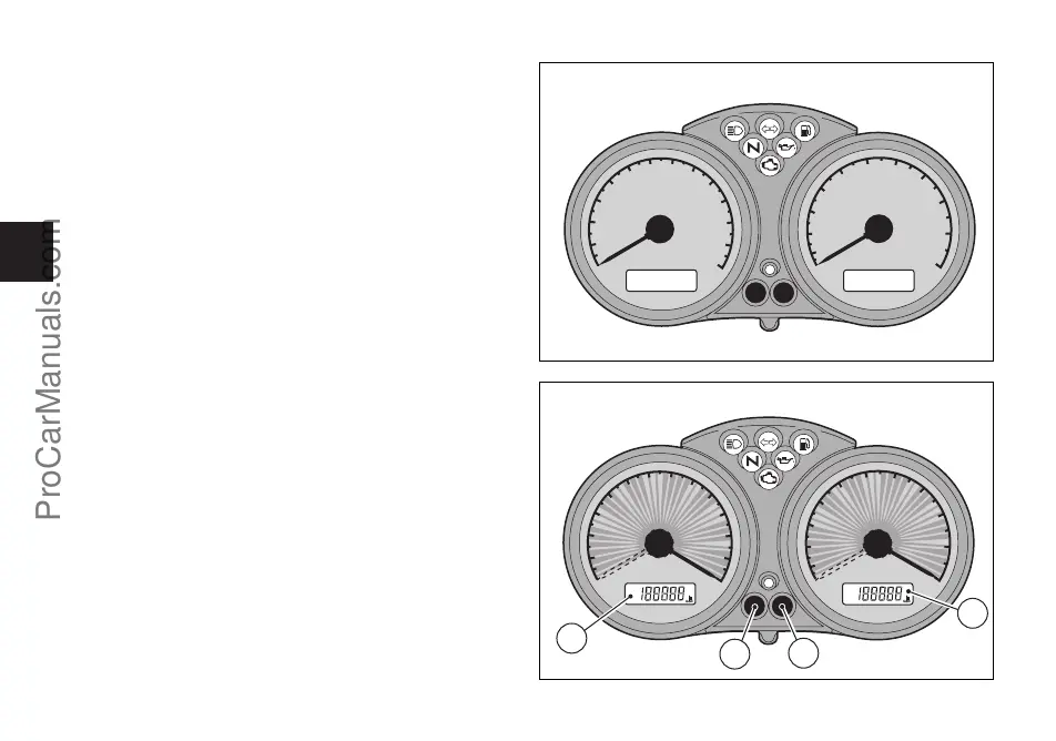 Turn the key to ON and press (B) (fig. 6) to display trip