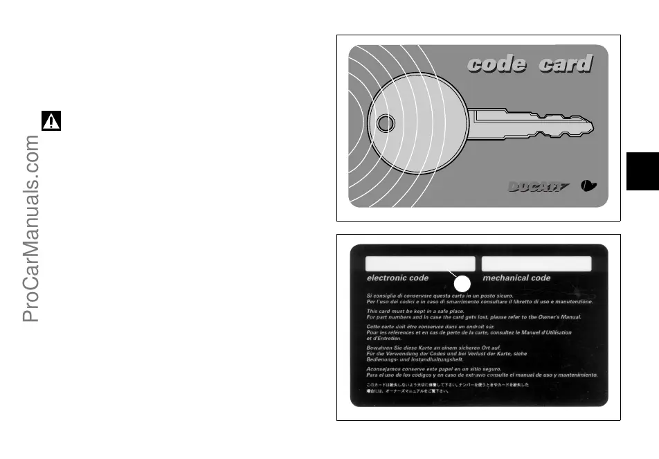 A CODE CARD (fig. 14) is supplied together with the keys,