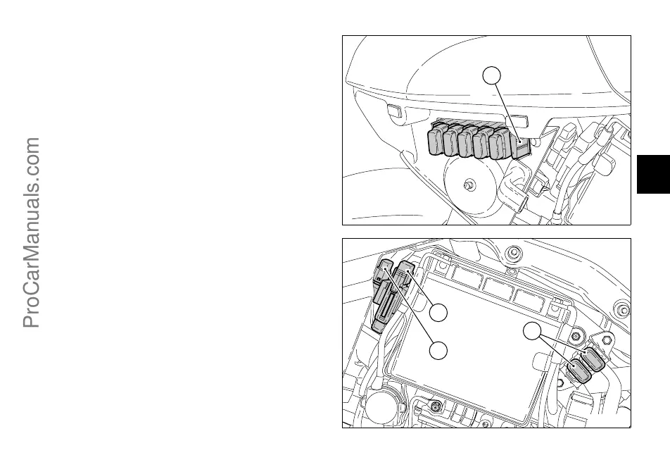 Fuse (3) protects the electronic regulator while fuse (4)