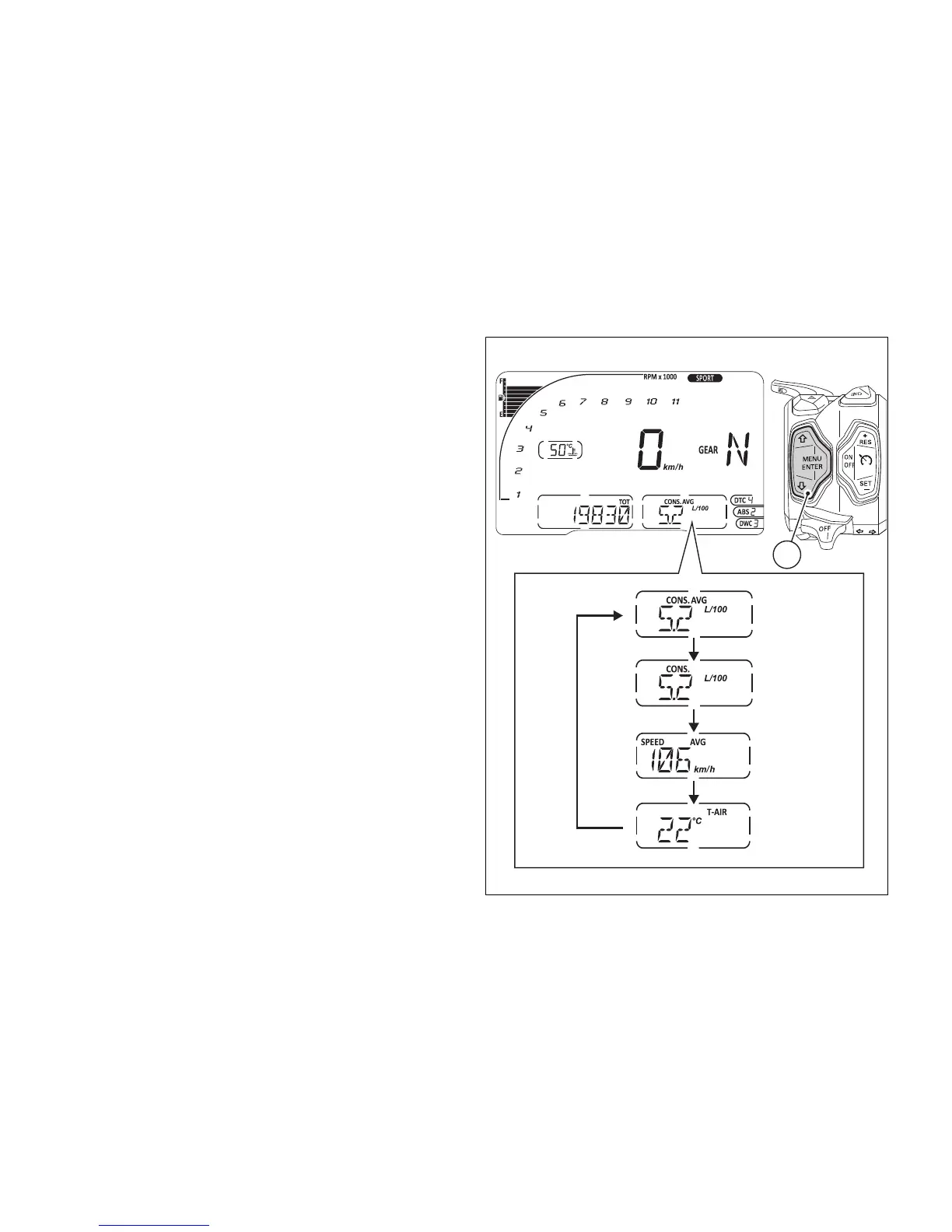 - Instantaneous fuel consumption (CONS.)