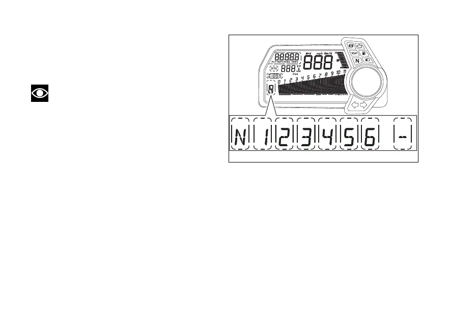 indicates the engaged gear or “N” for neutral.