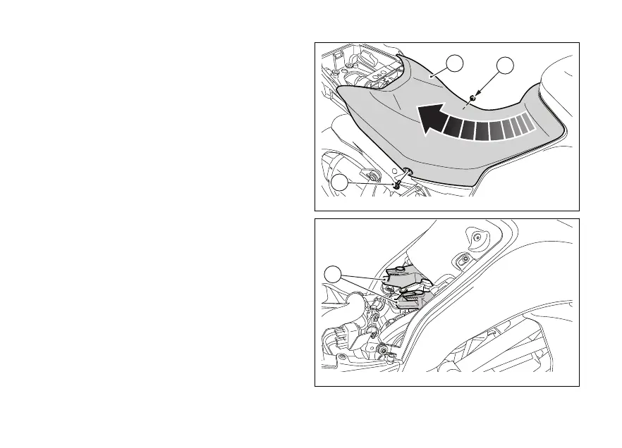 Remove the two screws (4) on the rider seat sides (5).