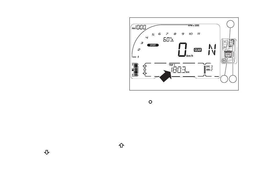 LH switch, for instance to reset trip meter 1 (TRIP 1,