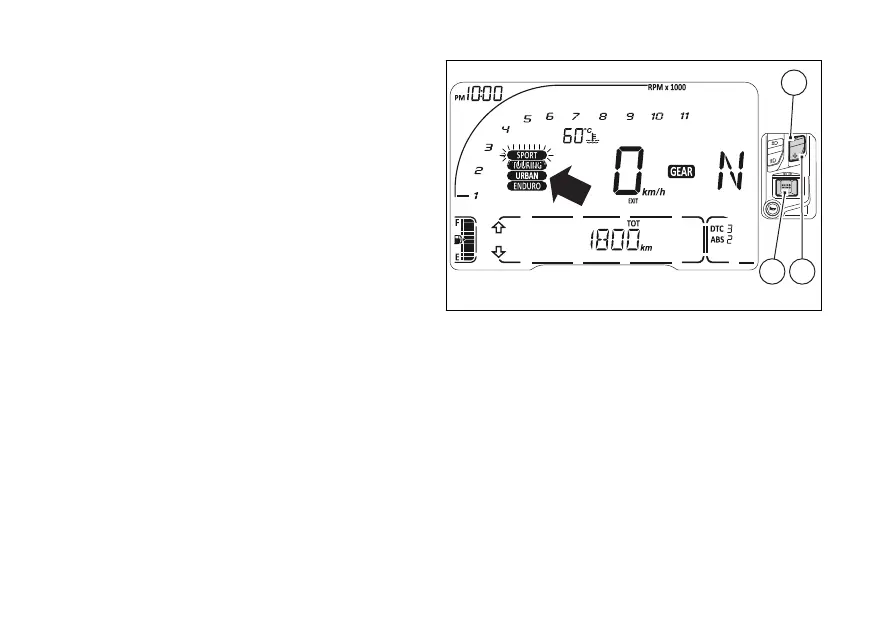 Upon change of riding mode, the instrument panel: