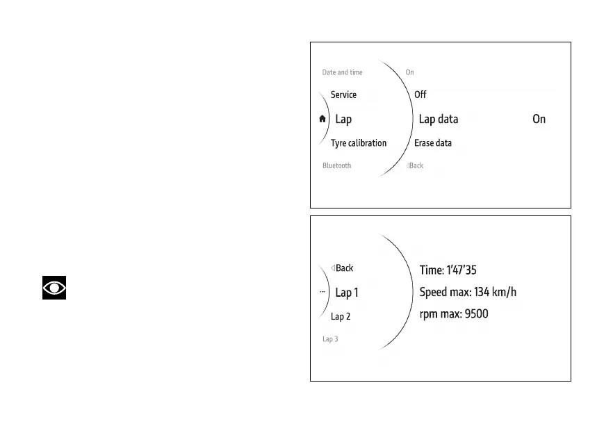 Select the Lap item and press ENTER (3).