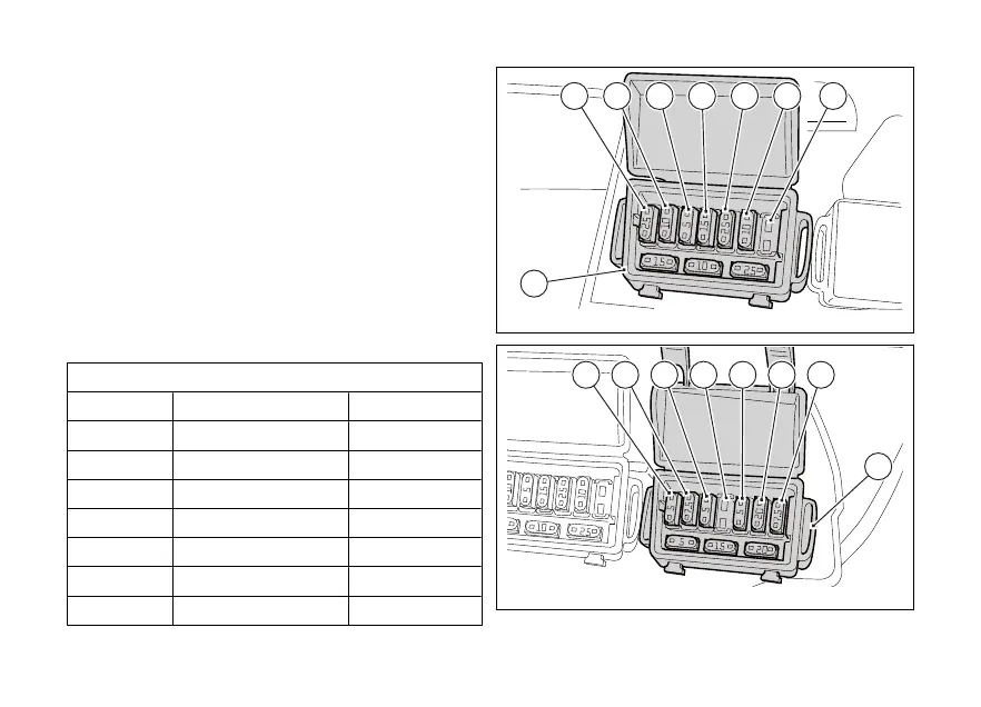 Spare fuses in the front and rear fuse boxes: