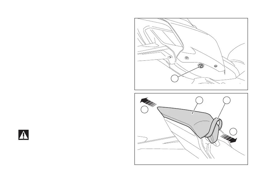 Use lock (1) to remove the passenger seat (2) and