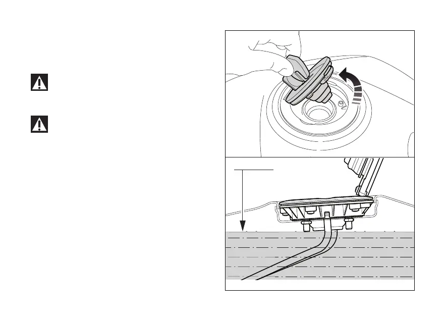 Never overfill the tank when refuelling. Fuel should
