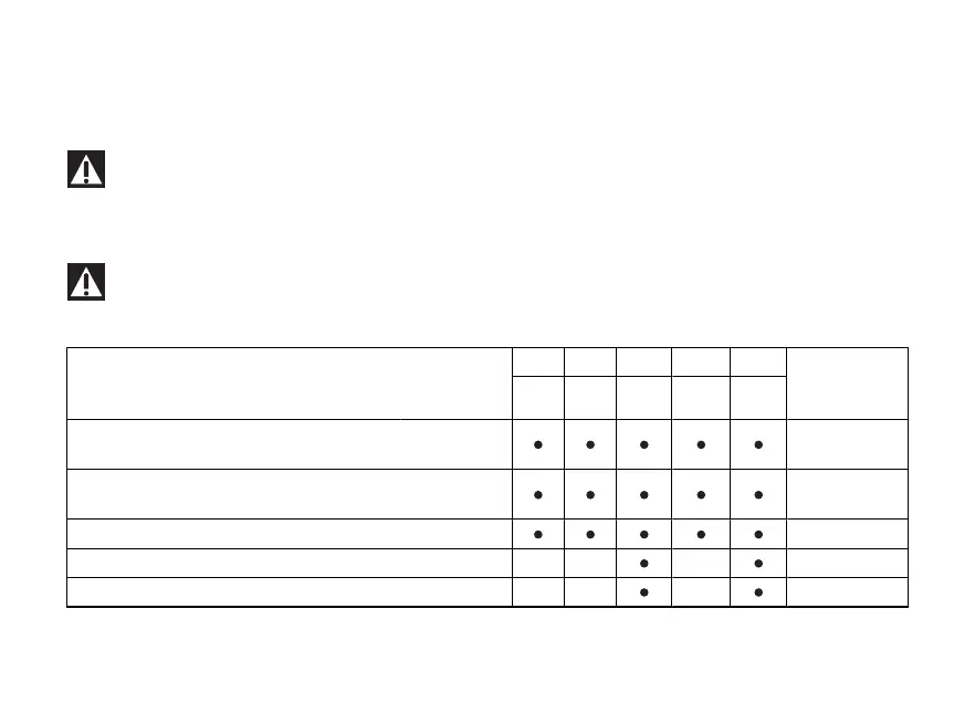 Scheduled maintenance chart: operations to be carried out by the dealer