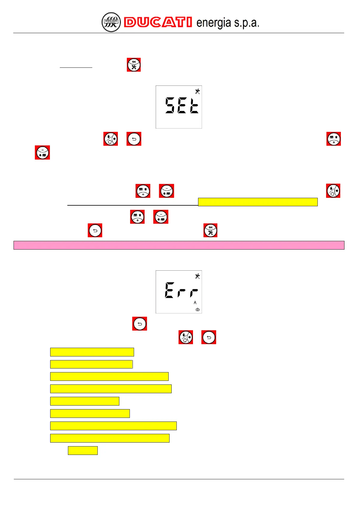 NOTE: if a numerical value out of range or with a wrong format is entered, the following error screen will be