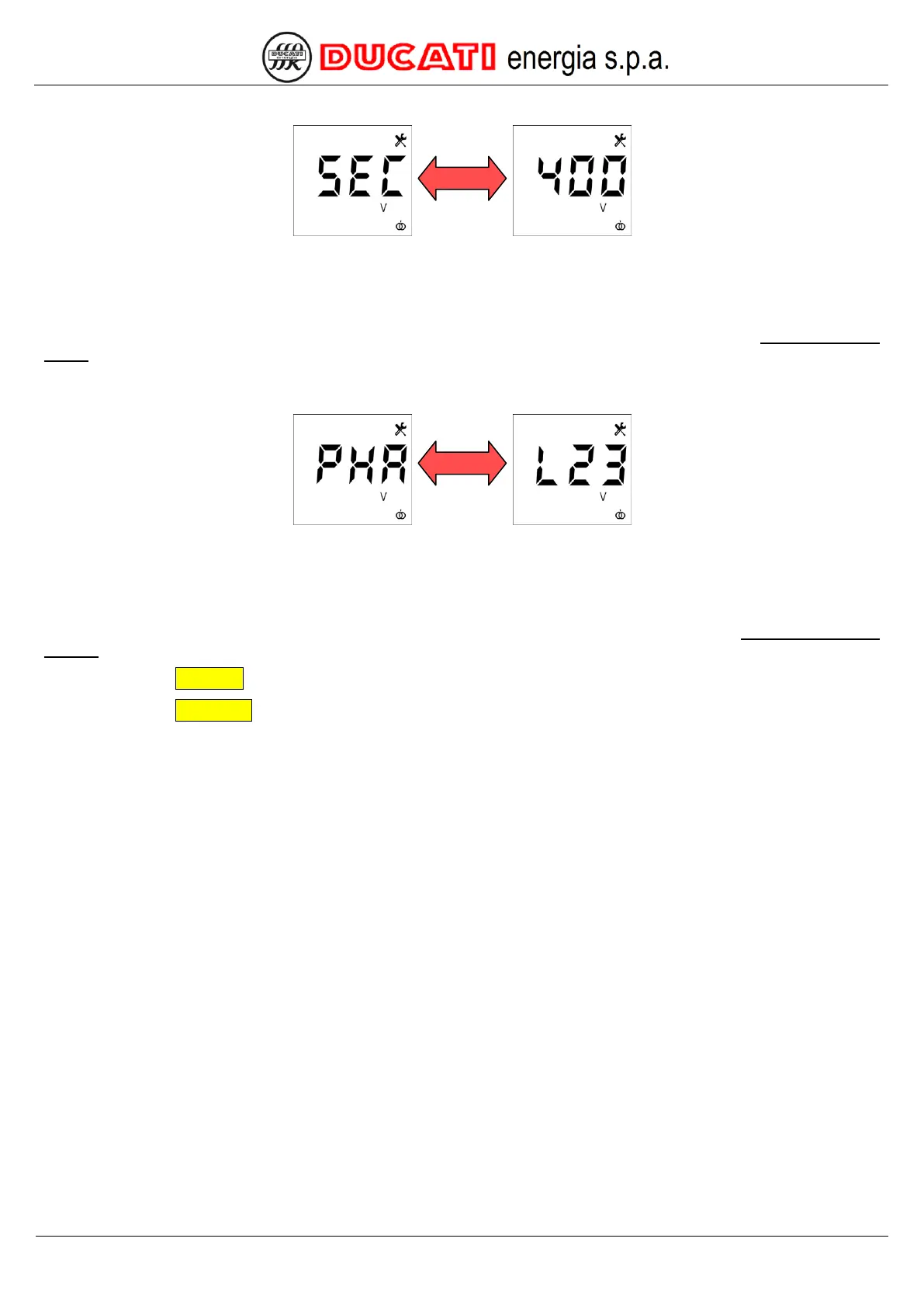 NOTE: if the VT is not present, set the supply voltage value used for the Power Factor Controller (400 or 230).