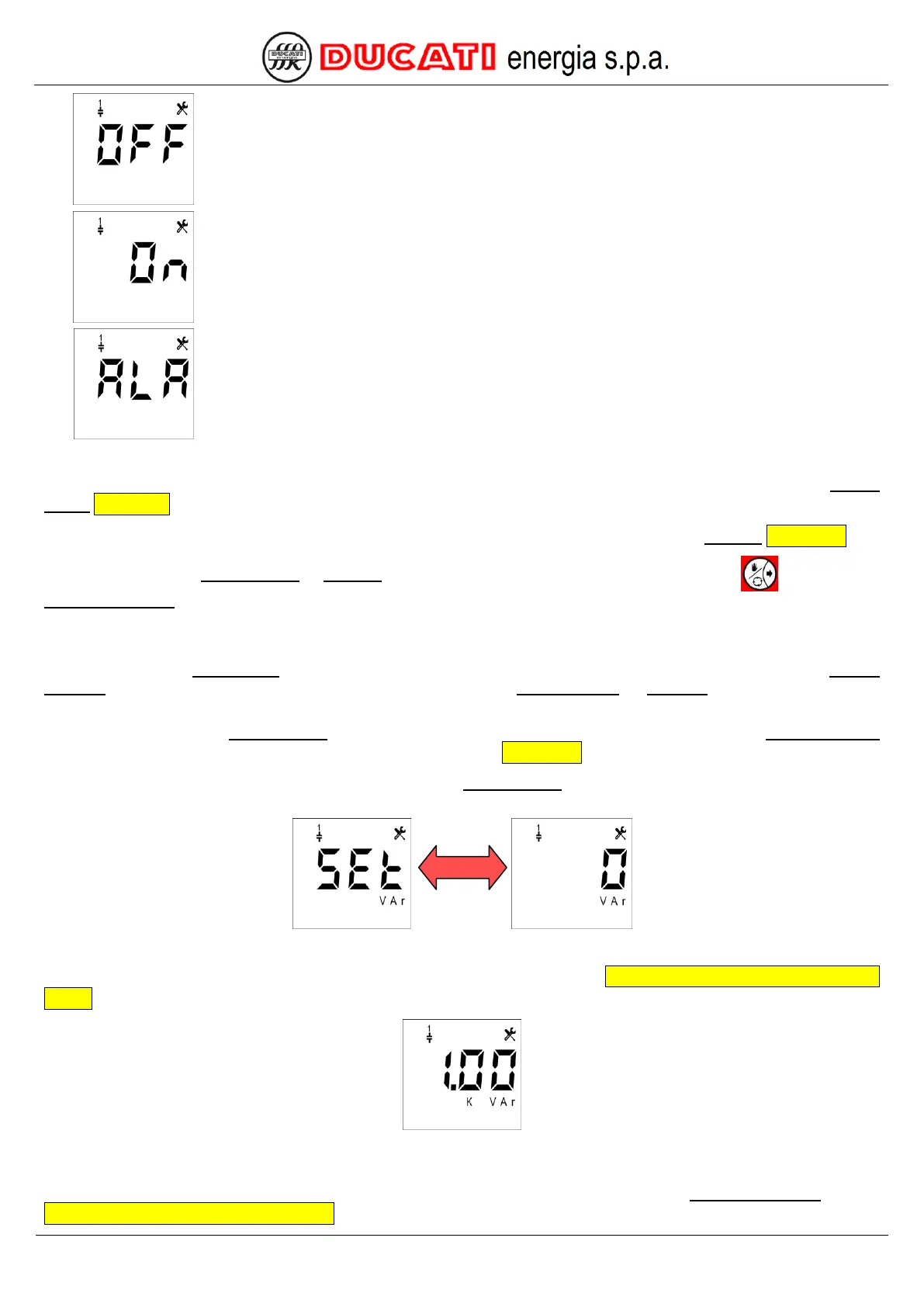 Example: to set 1kVar, enter (for numerical value entering mode refer to Chap. 7.8 - Numerical value entering