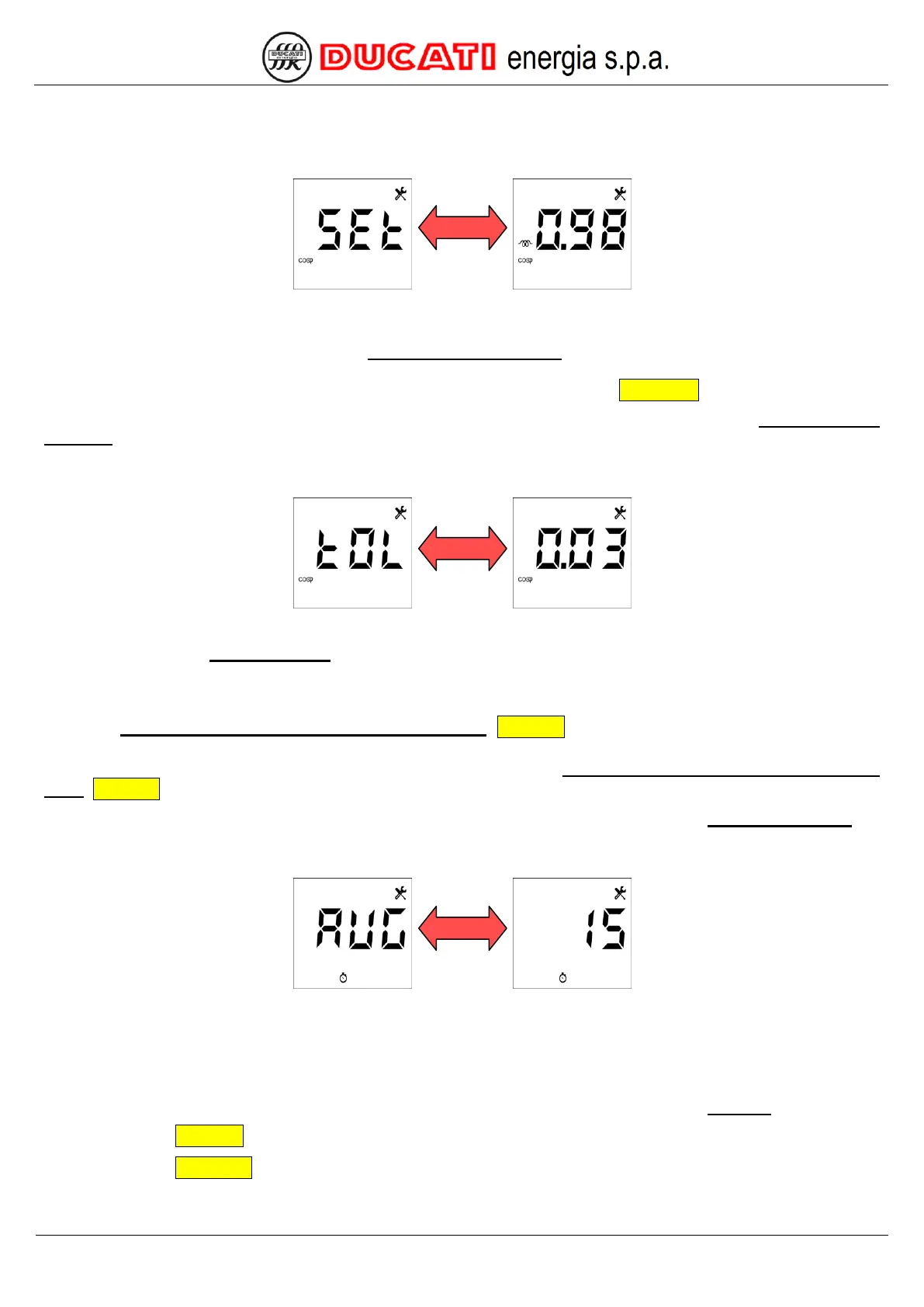 If a permitted value is entered, the controller will move to the next parameter setting screen (Cosphi setpoint