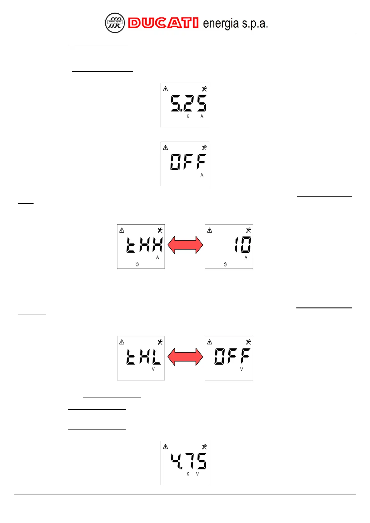 Example 2: if VT primary winding = “5.00k” and you wish to set the threshold at 95% (4.75kV), scroll the suggested