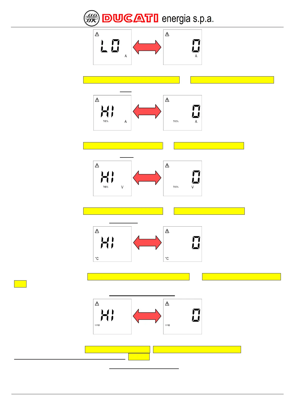 The next displayed page relates to the high THDI alarm. The following screen will appear: