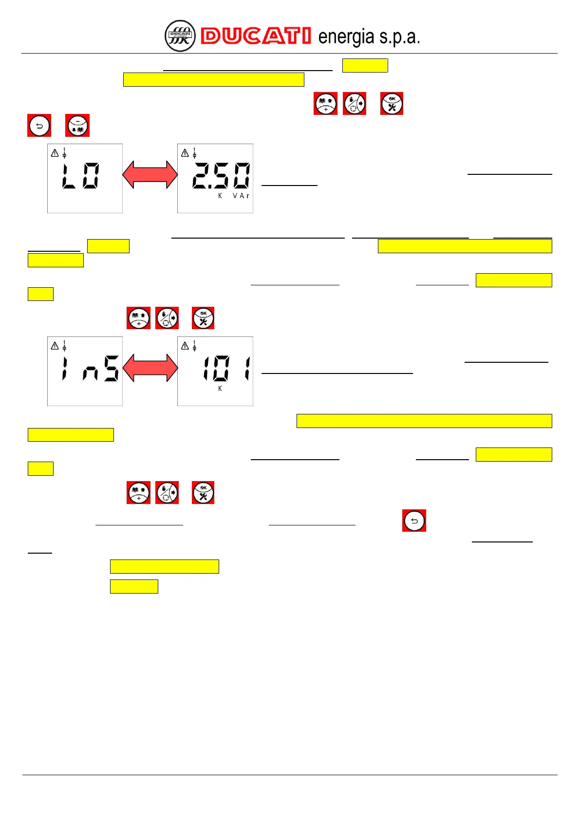 For alarm settings, refer to P.8 – Presence of blocking reactors, P.10 – Fault threshold 1 and P.12 – Fault