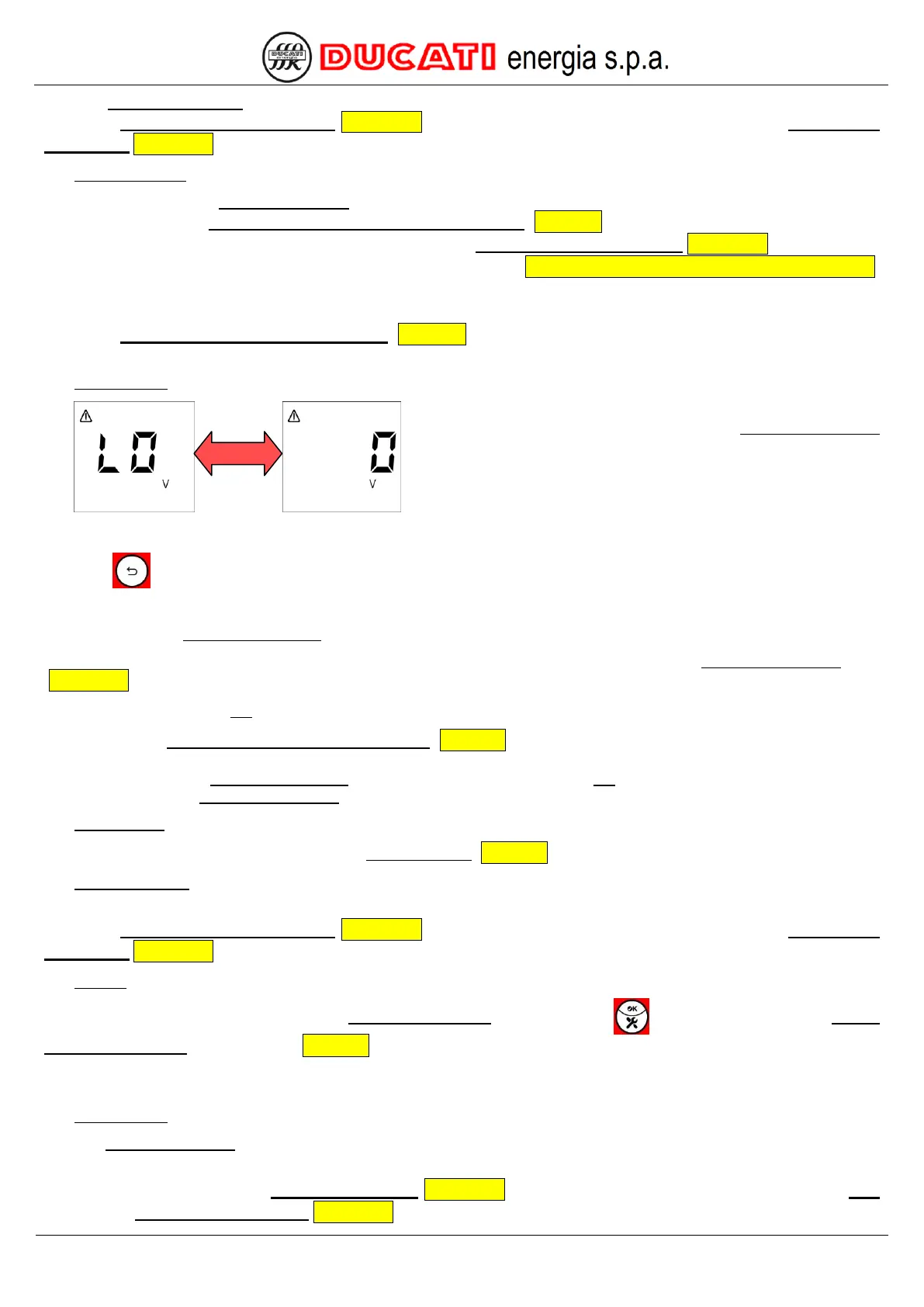 parameter Low voltage alarm threshold Chap. 7.5.5 for a time (in sec) equal to the value of parameter Low voltage
