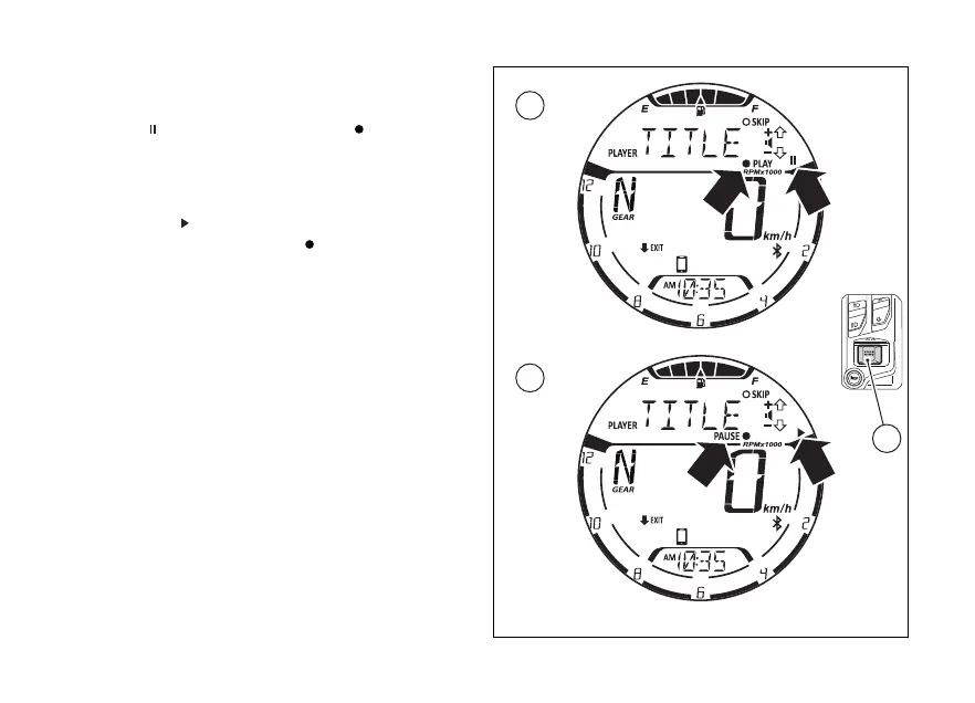 When the track is paused (A), the display shows the