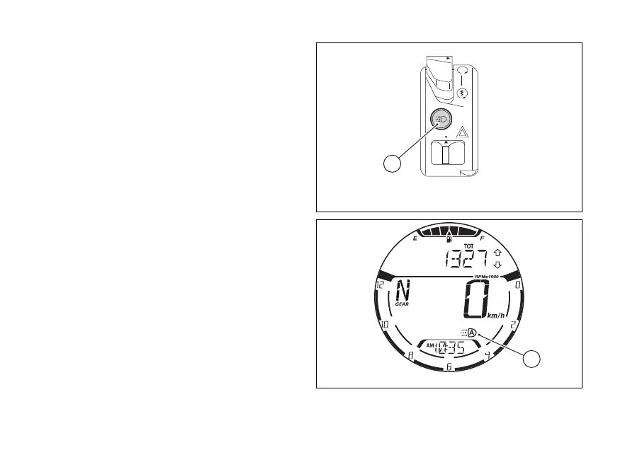 By pressing (7, Fig 18) the high and low beams