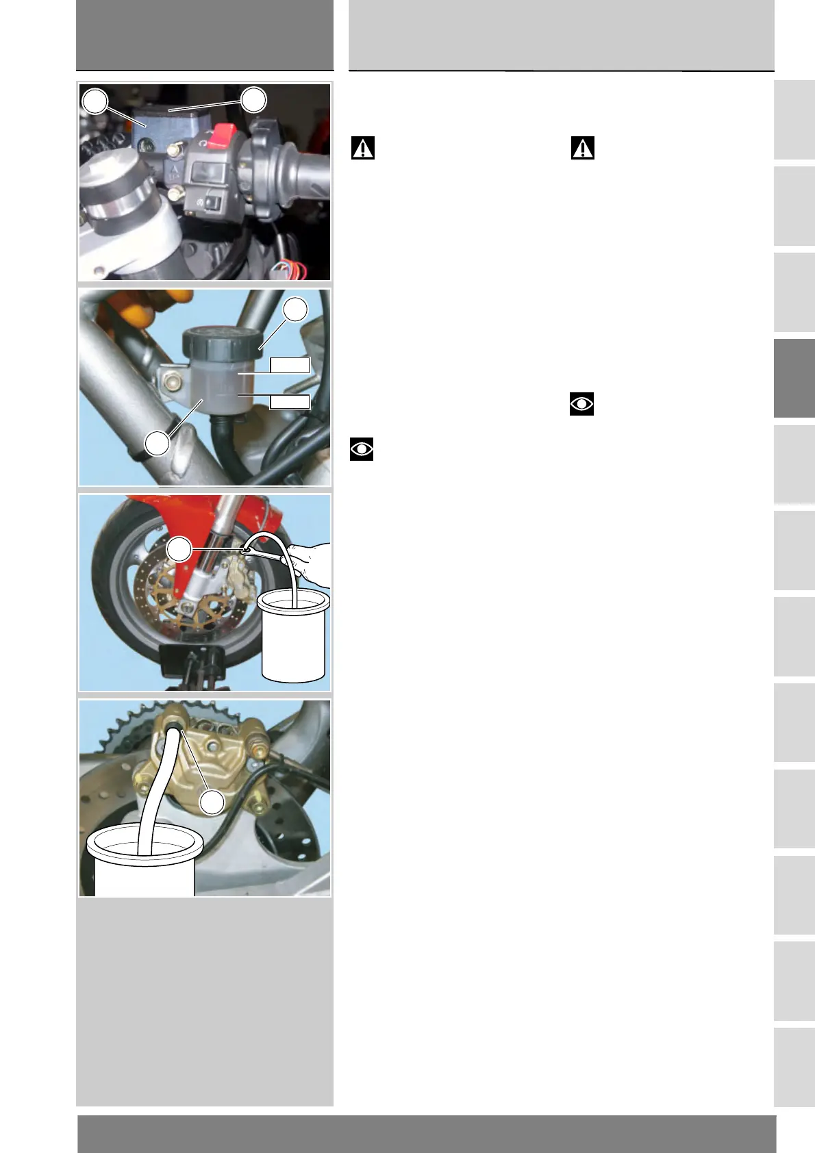 (3) from rear brake reservoir (B).