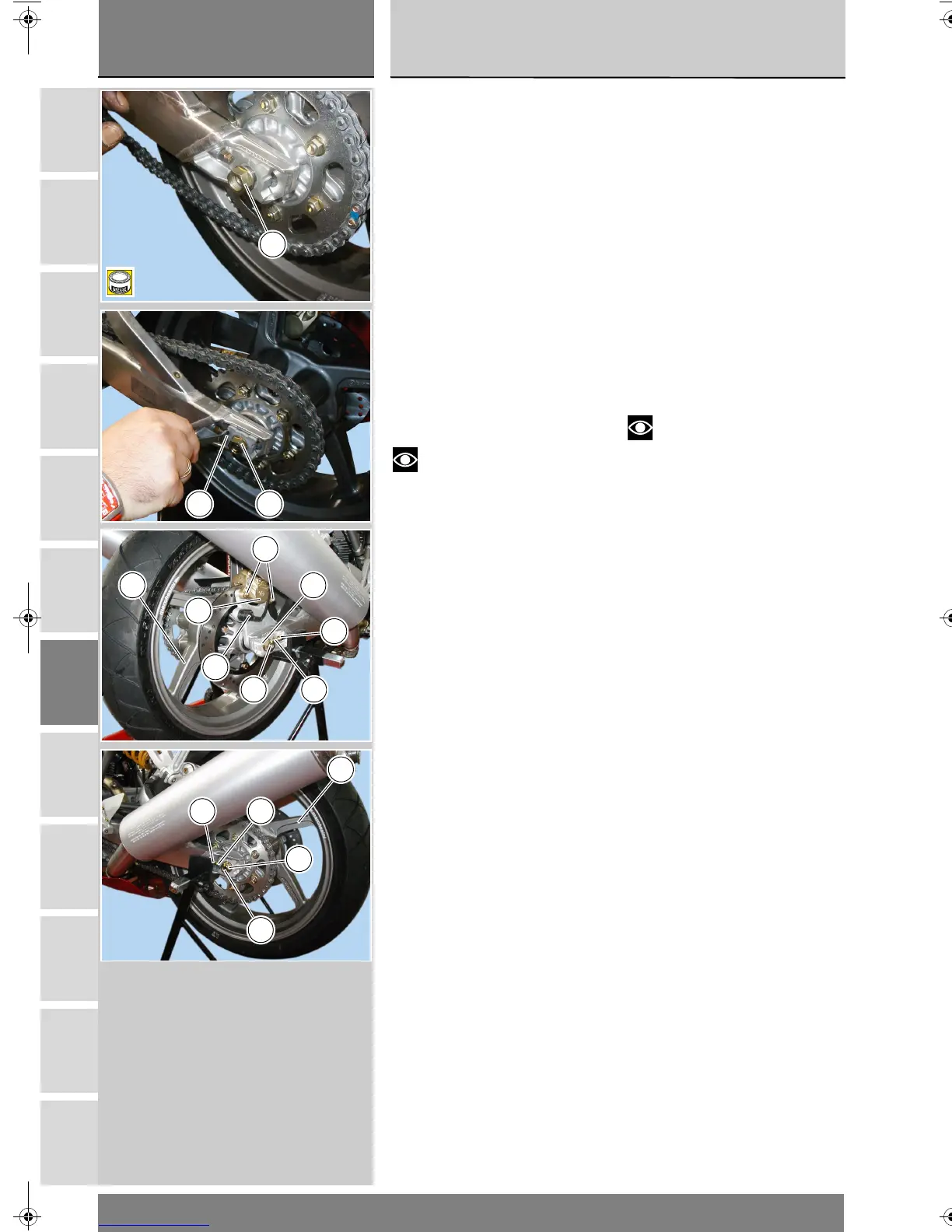 Tighten the nuts (8) on the chain